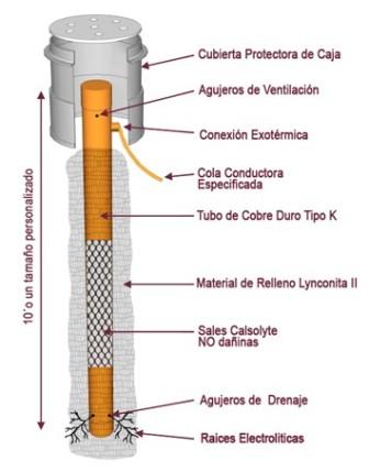 Sin embargo hay otros electrodos con características que NO cambian tanto con la estación. Son electrodos electrolíticos. En pocas palabras son elaborados con tres componentes: 1) un tubo de cobre (o puede ser acero inoxidable); 2) unas sales dentro del tubo que absorban la humedad del aire; 3) un relleno de bentonita alrededor del tubo en su pozo.