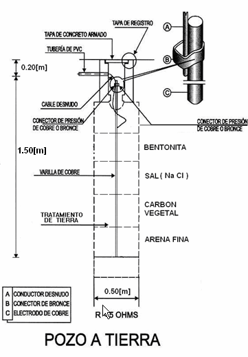 Tal «pozo a tierra» va a forma unas celdas galvánicas actuando sobre el electrodo. Cada vez que hay un cambio de ambiente (sal, carbón, bentonita, arena) habrá una celda galvánica. La sal va a garantizar que hay una celda galvánica. En pocas palabras un pozo semejante va a envenenar el electrodo. NUNCA recomendamos este práctica de elaborar un sistema de PAT, especialmente si tal PAT es para una instalación de alto valor. Es posible (¿probable?) que unos de los factores en el incendio de la refinería de El Palito fue la corrosión a través de los años. Una vez enterrados nadie no se sabe la condición actual de los electrodos del sistema de PAT.