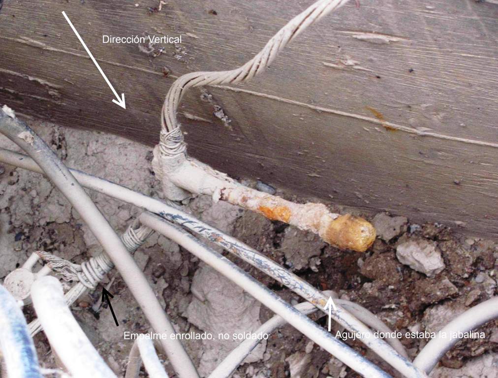 También notamos que hay un empalme enrollado. Aunque no enterrado tal empalme NO es recomendado. SIEMPRE usa por lo menos un conector mecánico.