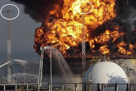 El miércoles 19-septiembre cayó un rayo sobre la refinería «El Palito» en Venezuela. Hay varios artículos sobre el incidente. Uno de estos está en Los Tiempos de Cochabamba Bolivia, aquí. Apagaron las llamas el viernes. La extinción del incendio tardió 50 horas.