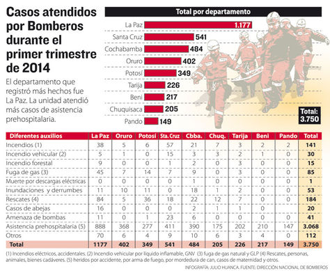 El artículo se encuentra en el periódico La Razón de La Paz. Indica que del año anterior al año actual es un incremento en incendios de 30% en los primeros tres meses del año! Sin dar cifras específicas el artículo indica que «la mayoría de los 141 casos atendidos fue originada por una mala conexión eléctrica, sobrecarga y fuga de gas, en ese orden«, explicó Daza (coronel de bomberos.) No es una sorpresa: es la experiencia de más que 100 años! Lo bueno es que a) hay una norma de instalaciones de luz en Bolivia (IBNORCA APNB-777); b) en diciembre de 2013 el país promulgó la Ley de Bomberos que puede ser el impulso para hacer cumplir legalmente la APNB-777 en el futuro.