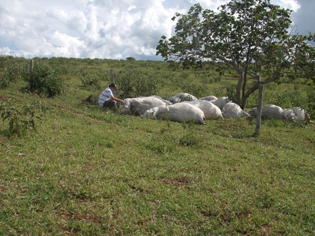 Otra vez, vacas múltiples bajo un árbol. Se puede encontrar la historia original en Globo.com Cuando se despersan los animales es imposíble proteger todos. Sin embargo hay una lección para nosotros: cuando hay una tormenta eléctrica no debe buscar refugio bajo un árbol.