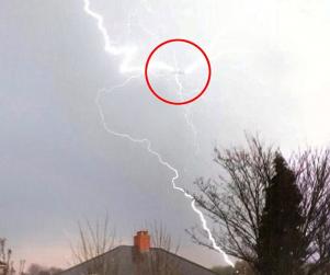 Ahora un avión alcanzado por un rayo. O tres rayos a la vez! Las estadísticas indican que aviones son alcanzados varios veces por año. No es en cada vuelo, pero suele común. ¿Por qué no explotan? La razón es fácil entender: la armadura o carrocería del avión es metálica. No hay una diferencia de potencial / voltaje entre un punto y el otro. Además *dentro* de la carrocería es una jaula Faraday. Los pasajeros van a escuchar el trueno, pero no hay una diferencia de potencial entre puntos.