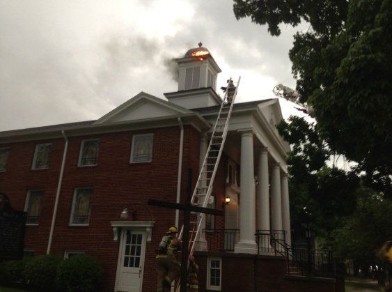 Hoy tenemos la noticia de un rayo que cayó sobre el campanario de una iglesia en Virginia. Ver la noticia (inglés). Por suerte los bomberos llegaron a la iglesia en pocos minutos. Tal iglesia tiene una cantidad de madera en su construcción.